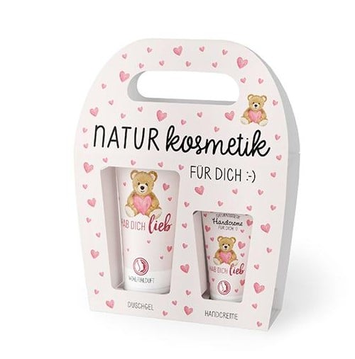 Ciò che rende questo set così speciale è il messaggio "Buon umore per te". È stampato sul gel doccia e sulla crema per le mani. Ad ogni utilizzo ti viene ricordato che stai facendo qualcosa di buono per te stesso e che meriti di essere felice. Questo messaggio positivo, combinato con i prodotti cosmetici naturali di alta qualità, rende questo set un vero e proprio potenziatore dell'umore.