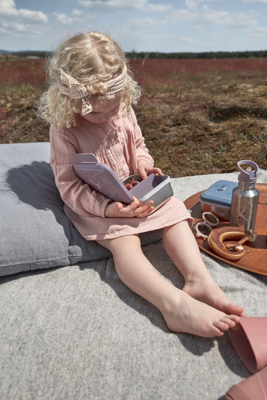 Die Brotdose im trendigen Adventure Design in den Farben Altrosa mit einem Tipi oder Blau mit einem Bus kann einfach in der Spülmaschine gereinigt werden.