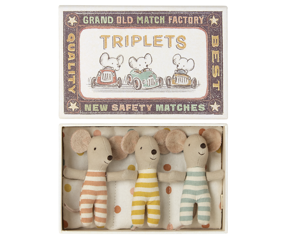 Drillinge Babymäuse in der Streichholzschachtel Maileg